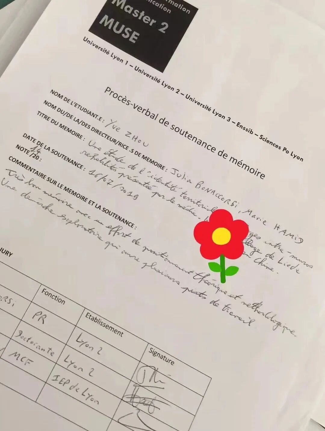 考虑到我是一个外国人,她特意委托一个法国博士师姐帮我修改一下。不得不说,文书被师姐修改了之后,简直改头换面,研究问题、方法以及逻辑都变得清晰。导师看了高兴地说;“太棒了”。
