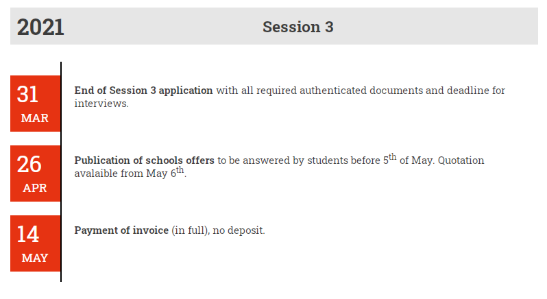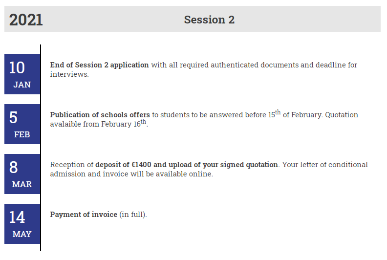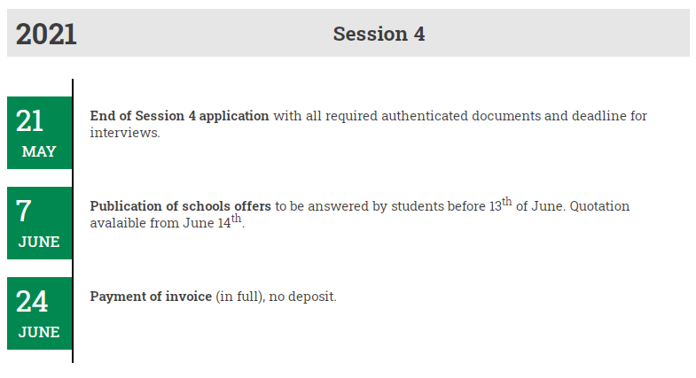 申请法国工程师院校的同学们一定都听过N+i联盟。N+i联盟是由5法国50余所工程师学校所组成的联盟,20年来培训了来自80个国家的近3000名国际工程师。目前“N+i”项目2021年入学申请已经开始,申请共分为四个批次进行,申请时间如下: