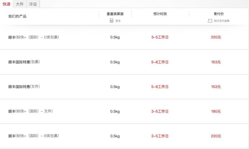 顺丰:不用多说了,一直是国内快递界的龙头老大,把业务发展到国际上,价格还是很亲民的。