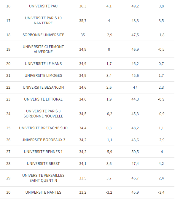 艾克斯-马赛、勒芒和普瓦捷大学在 STAPS 硕士毕业率排名中名列前茅。